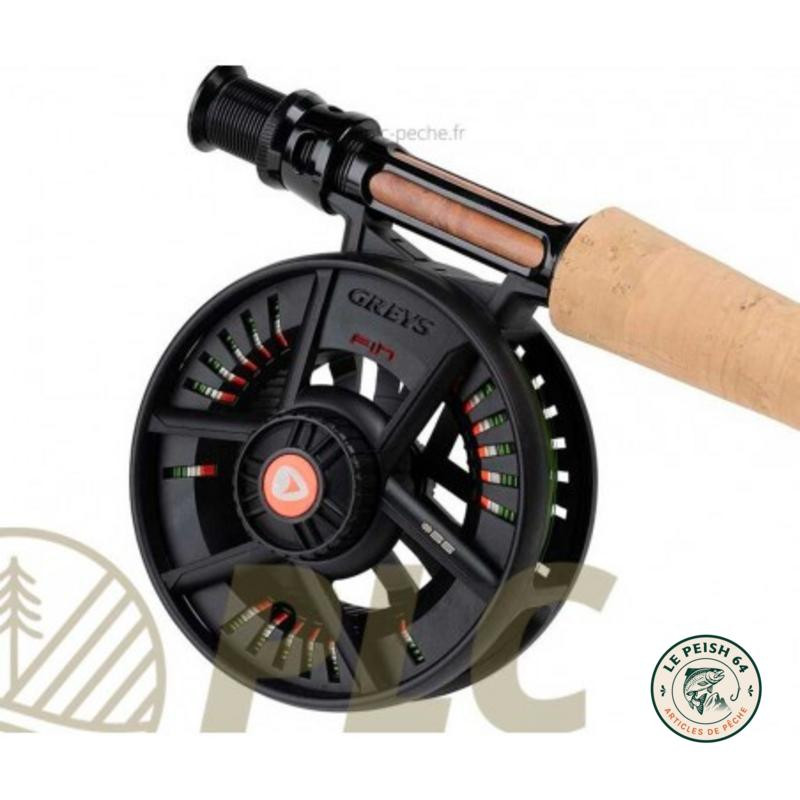Canne à mouche Greys Fin Combo 9ft, modèle 8/9, 4 pièces. Léger, tolérant, idéal pour pêcher en rivières moyennes. Prête à l'emploi avec moulinet et soie.