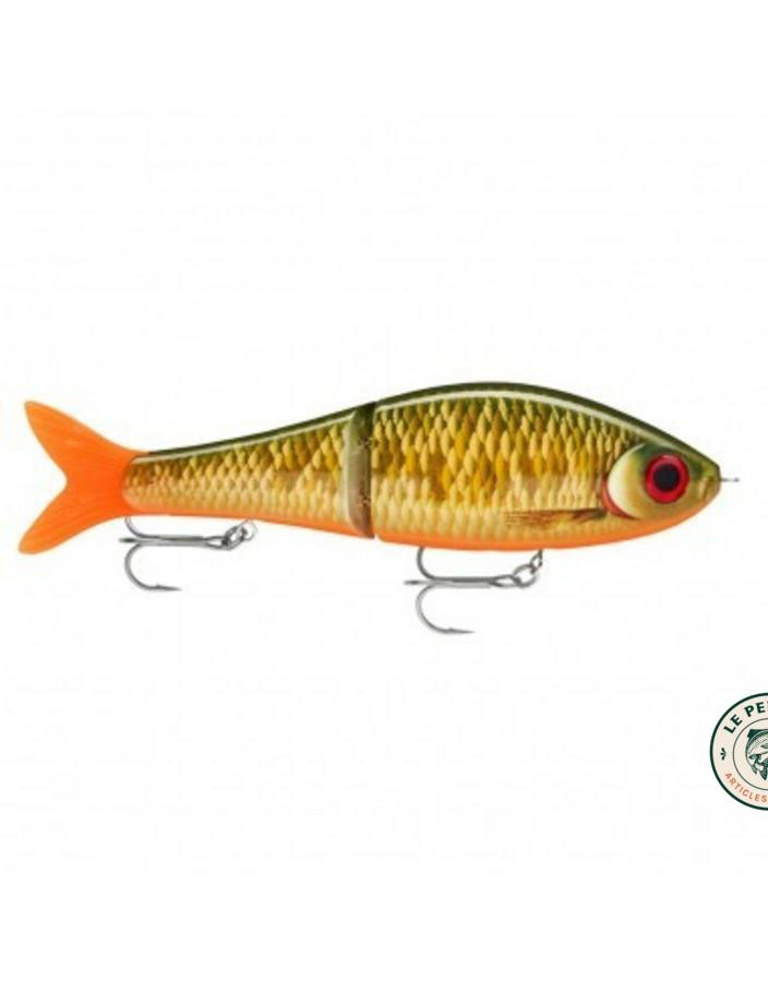 Le leurre Rapala Super Shadow Rap Glide 11cm nage en S avec système SDS et crochets VMC, idéal pour pêcher le brochet en jerk.