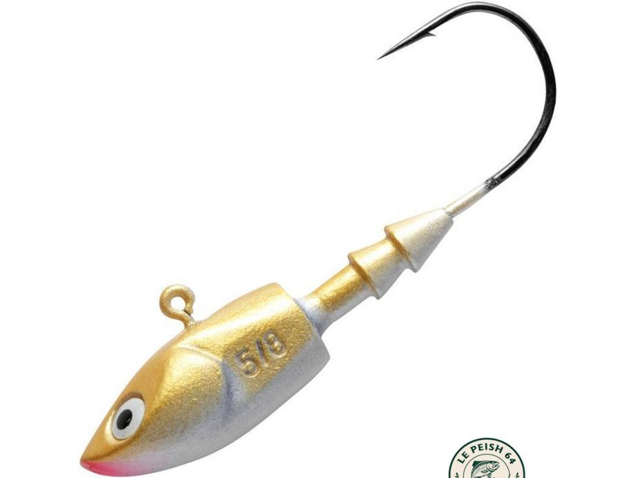 Ce lot comprend 3 têtes plombées Jig Deep, calibrées à 21 g chacune, avec finition bronze et dorée. Ces têtes fonctionnent particulièrement sur la verticale et la prospection rapide des fonds. Leur forme plate au-dessus dirige rapidement la nage vers le fond, idéale pour débusquer les carnassiers en profondeur.