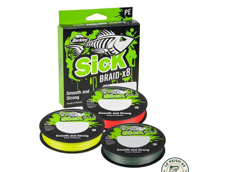 Tresse Berkley Sick Braid, diamètre 0,08 mm, résistance 6 kg, longueur 150 m. Parfaite pour les pêches exigeantes où la discrétion et la résistance sont clés.
